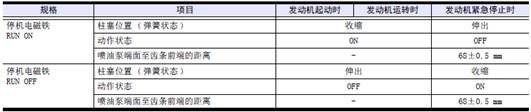 注: 調(diào)速器執(zhí)行器的電源OFF 時,噴油泵齒條處于不噴油 ( 發(fā)動機停止) 位置。這時,噴油泵側(cè)端面和齒條前端的距離為68±0.5 mm 。