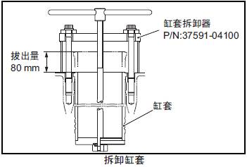 (1) 在三菱R16柴油發動機缸套上安裝三菱R16柴油發動機缸套拆卸器。